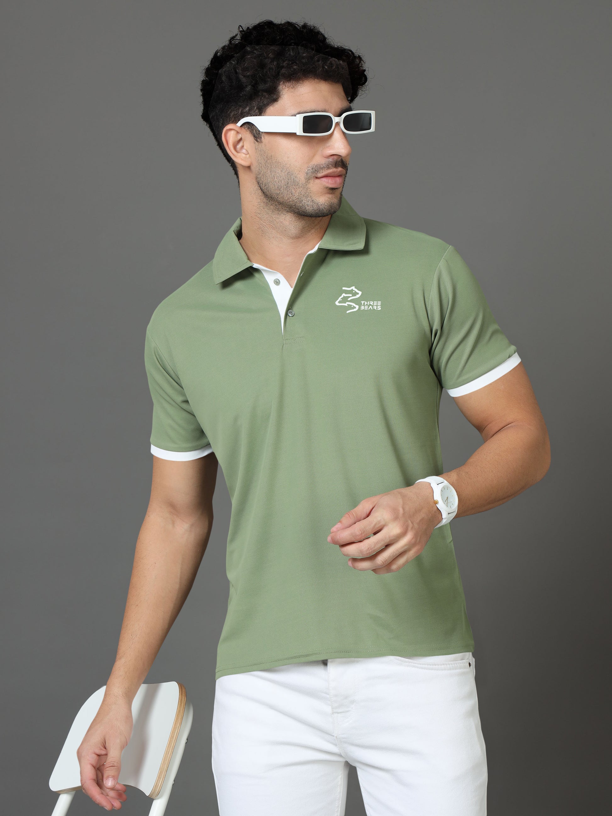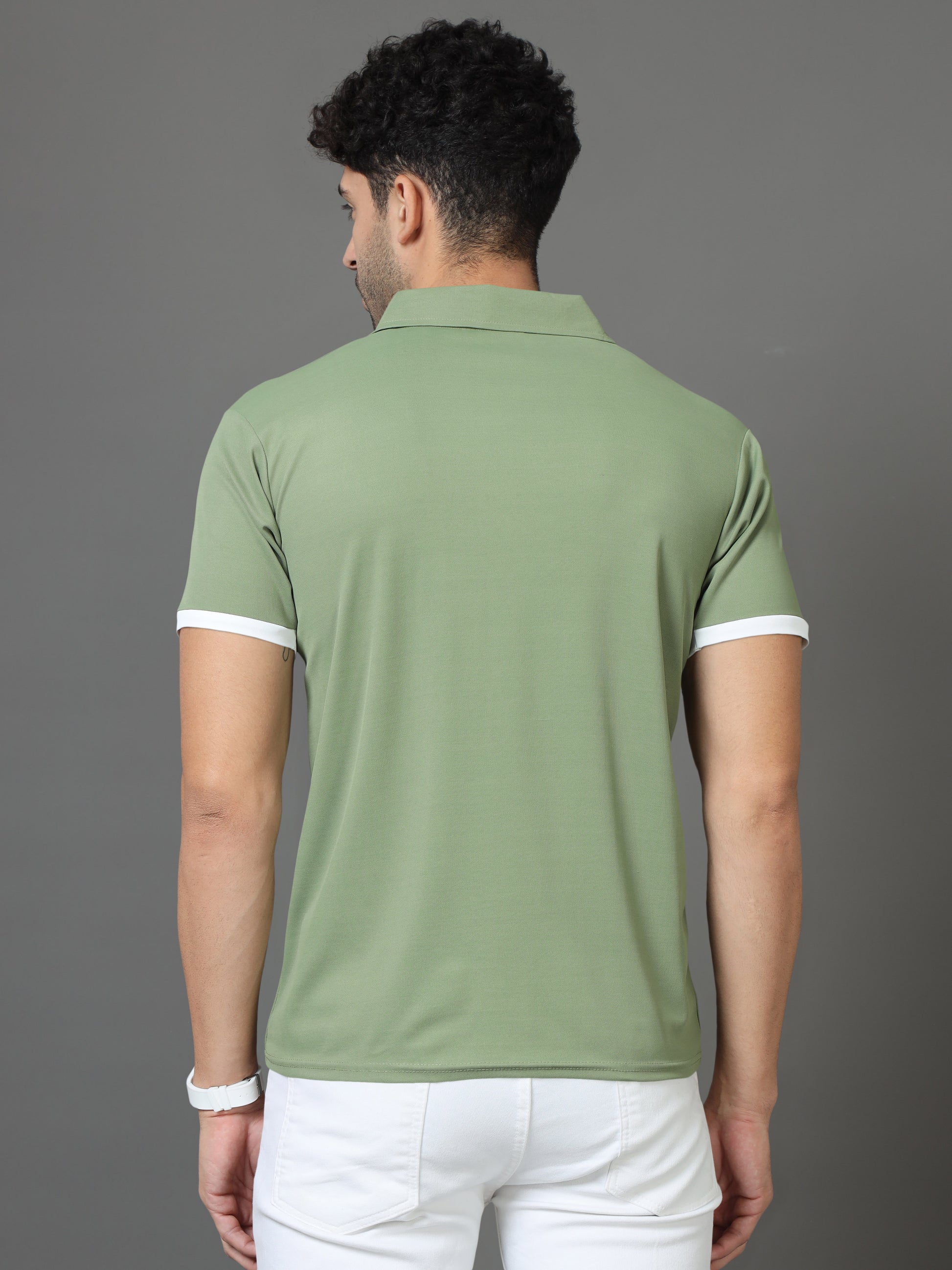 Polo Neck Cotton Blend Green T-Shirt