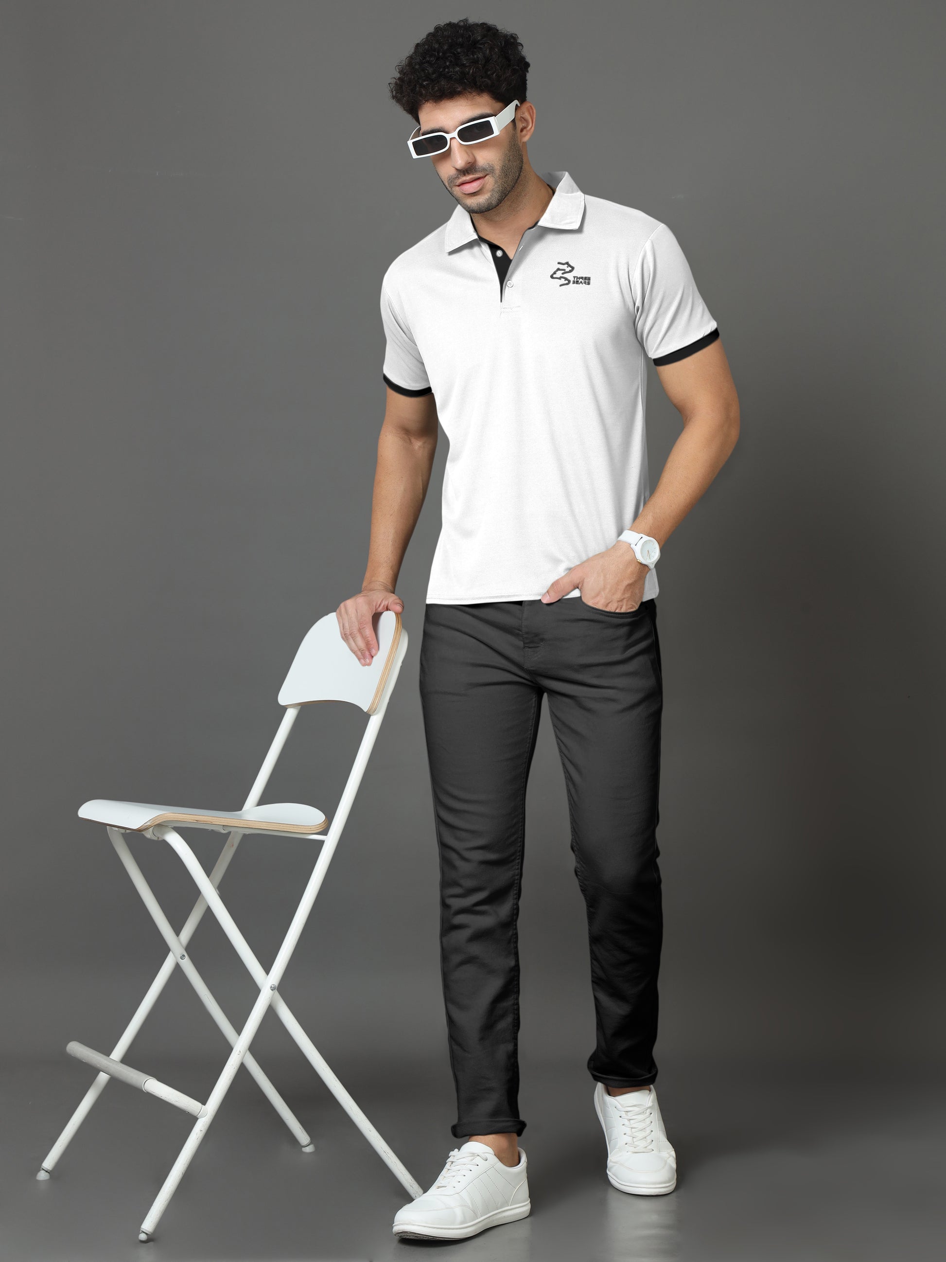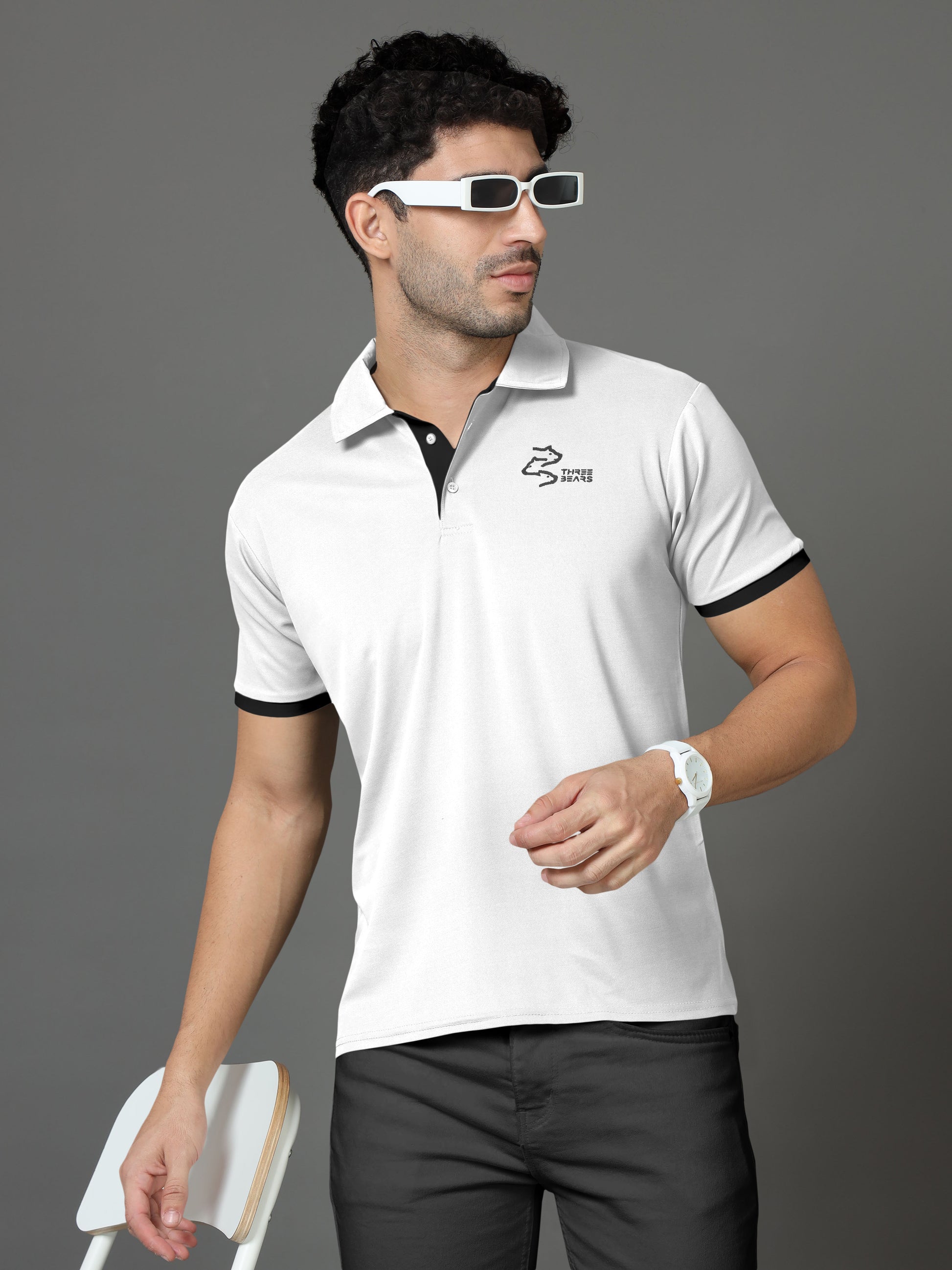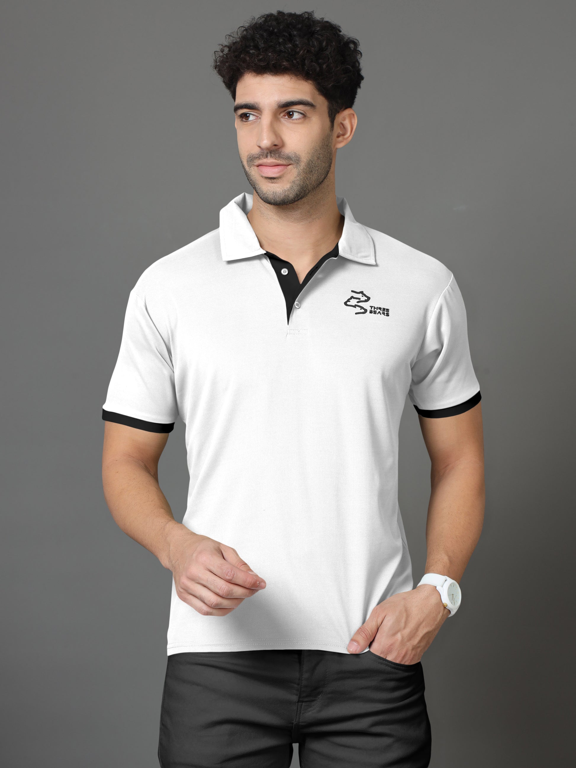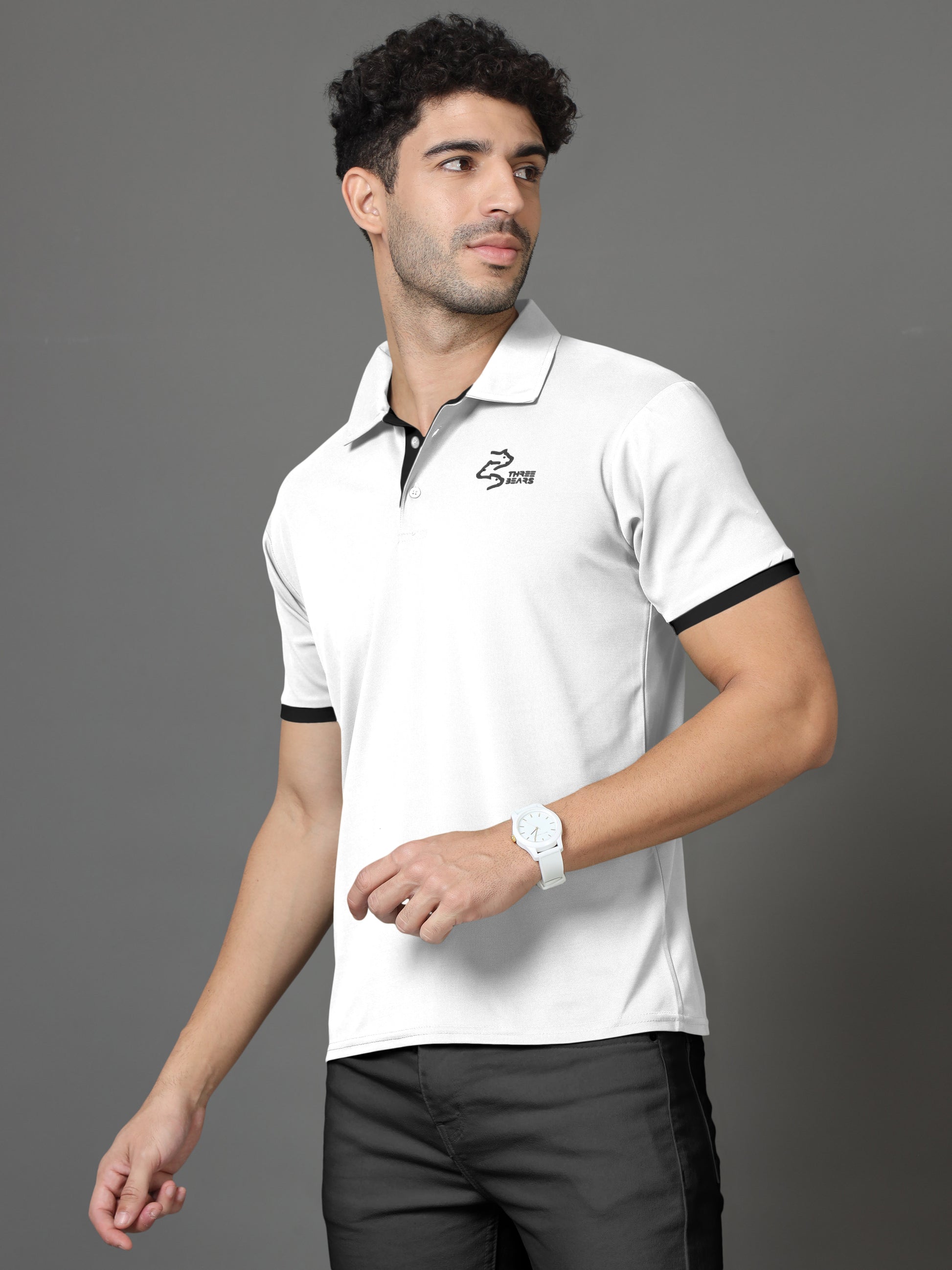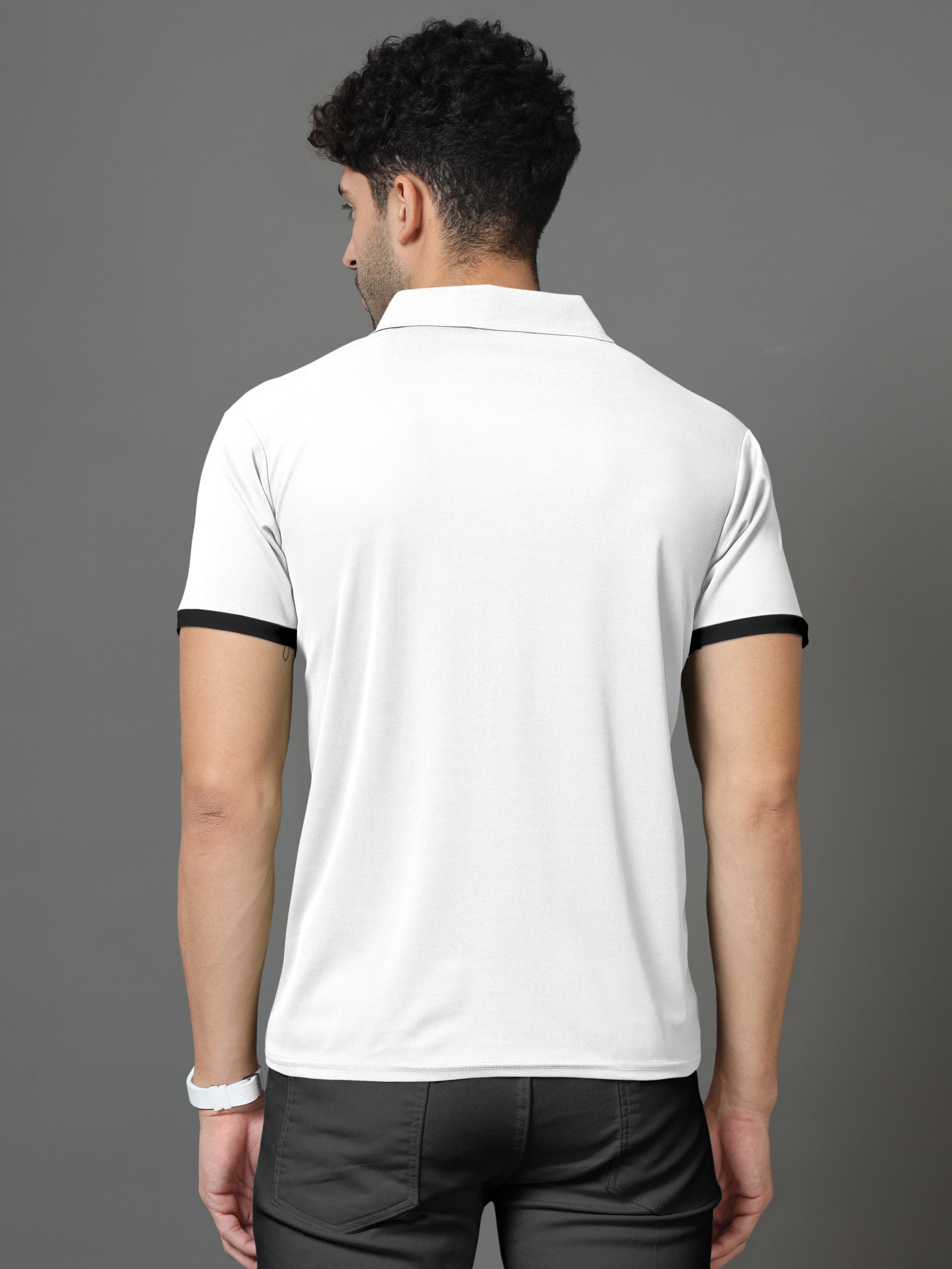 Polo Neck Cotton Blend White T-Shirt